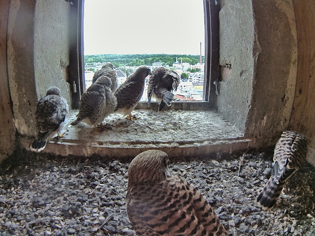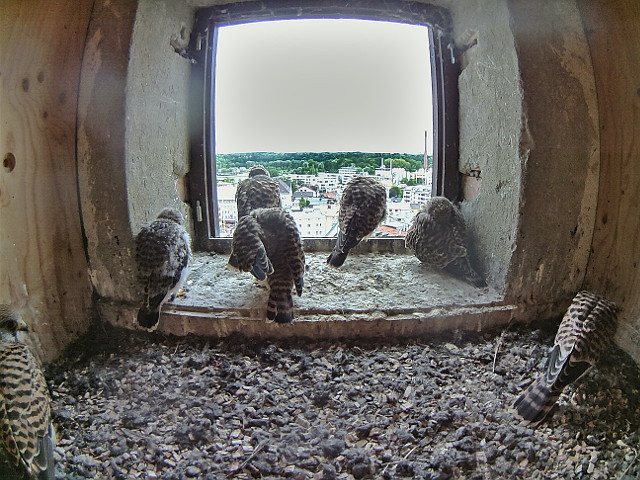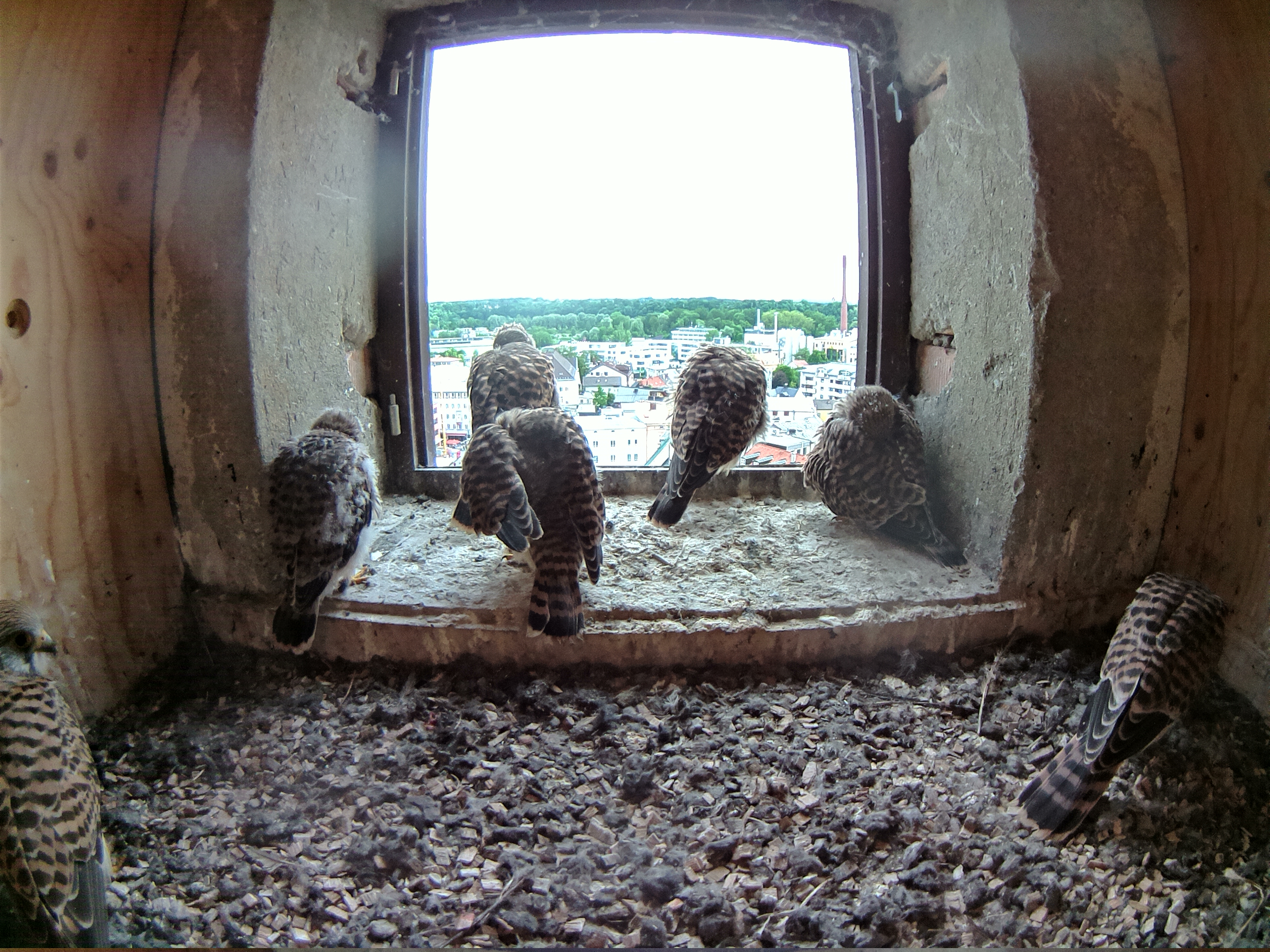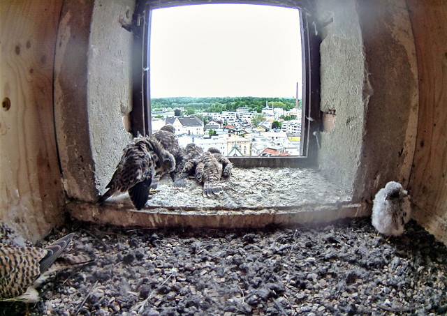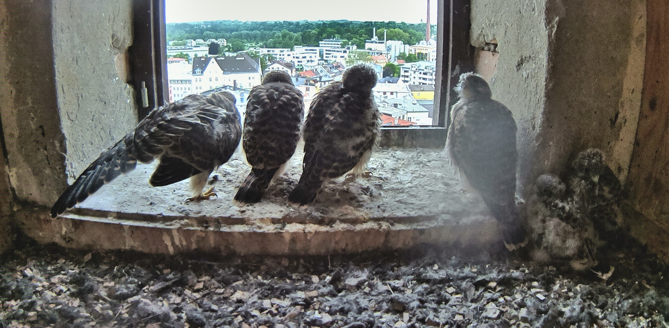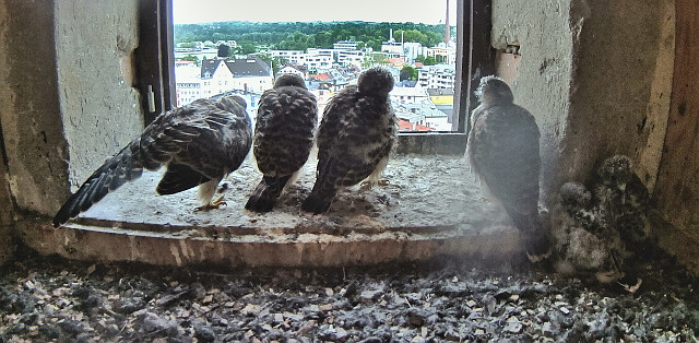 Inzwischen ist der Juli angebrochen, die jungen Falken sind gross geworden, alle gesund und unterwegs in der Stadt