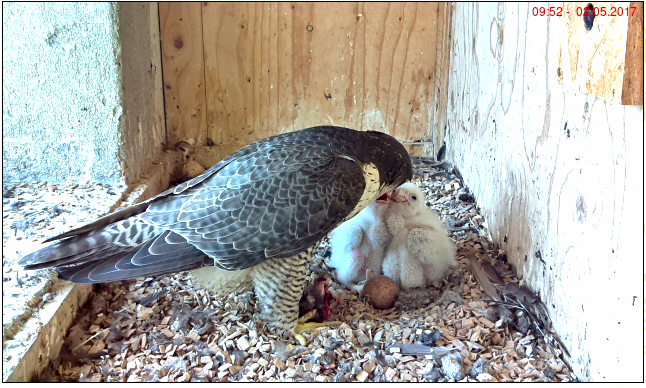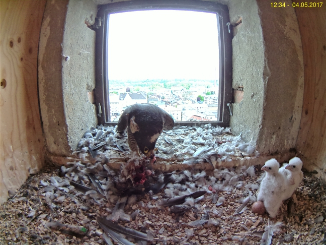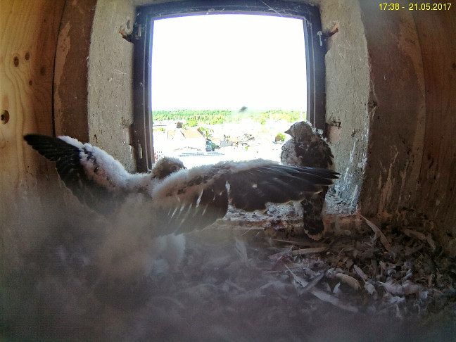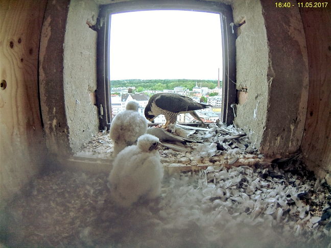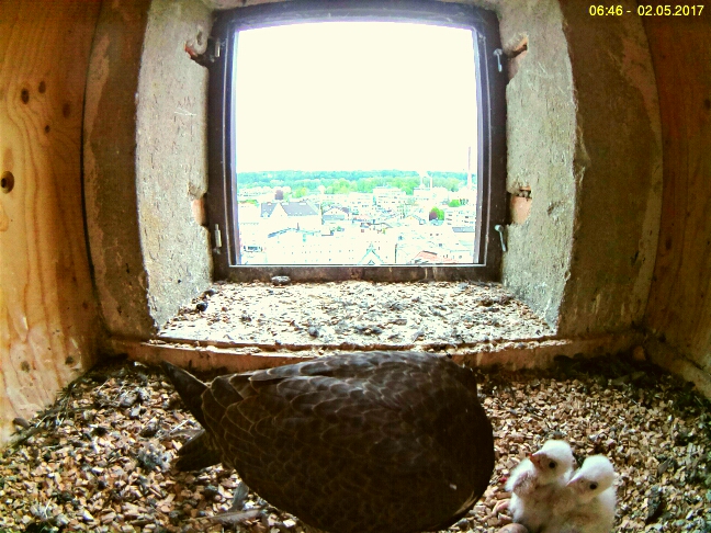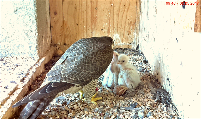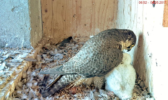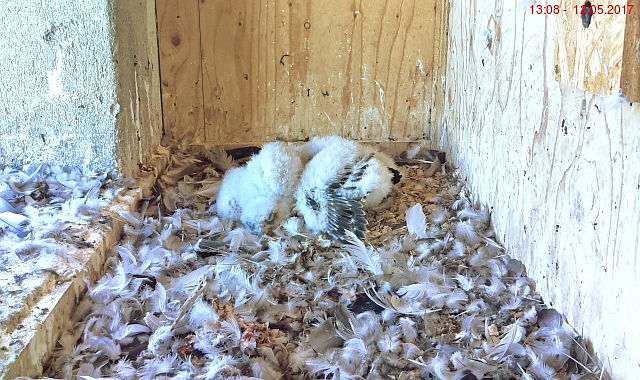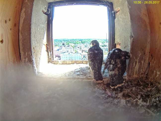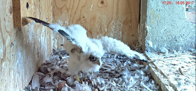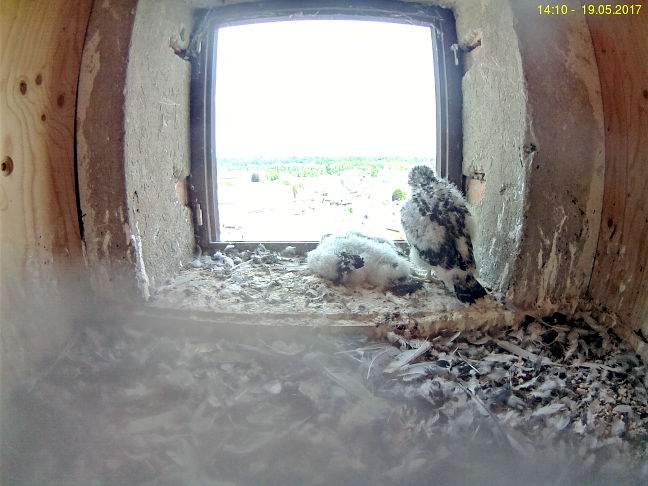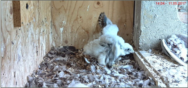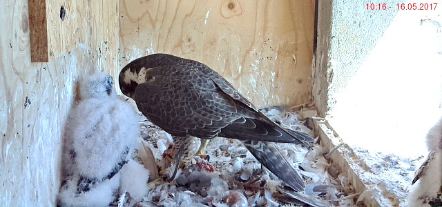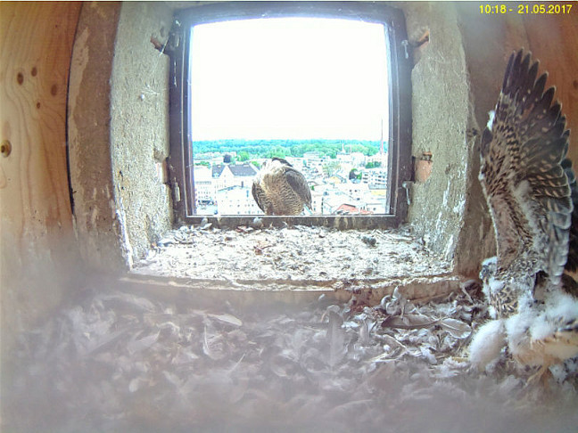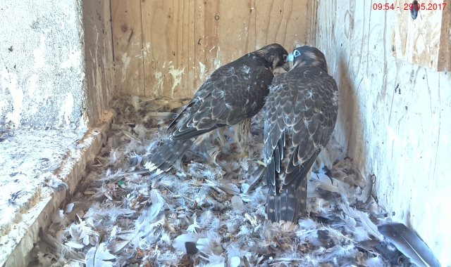 Die jungen Wanderfalken werden Mitte / Ende dieser Woche vermutlich den ersten Ausflug wagen.