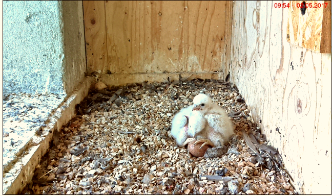 Aber die beiden geschlüpften Küken wachsen im Eiltempo! Erste Mahlzeit, die Nacht war lang