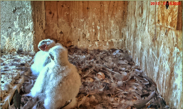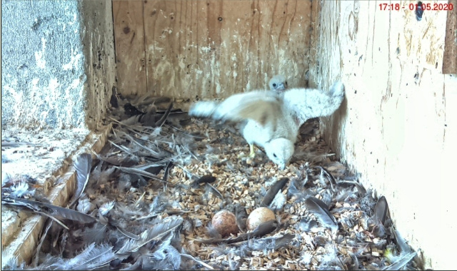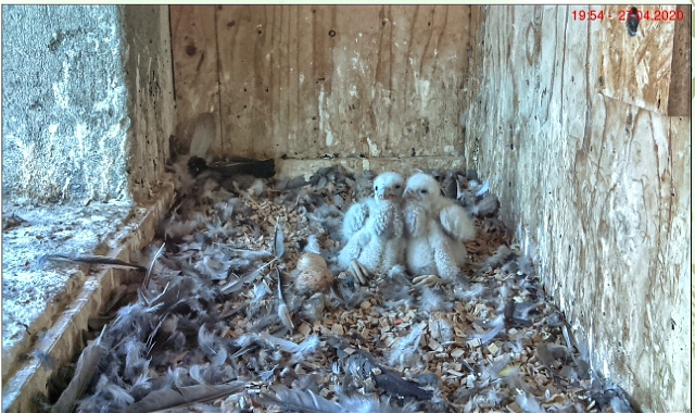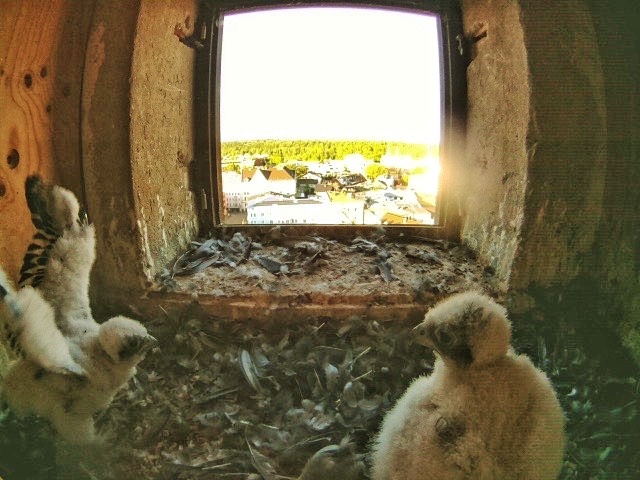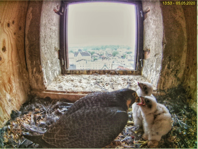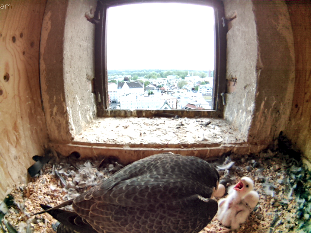 erzählen eine sehr lebhafte Geschichte, die kleinen Falken wachsen wie im Zeitraffertempo heran, werden gefüttert,