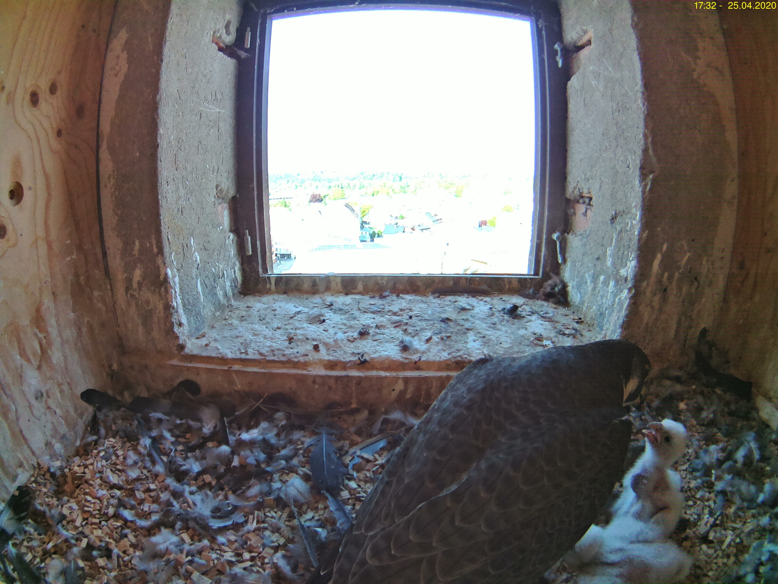 Am heutigen Dienstag war ich kurz am Turm und siehe da, eines der Elterntiere hat mir ein paar dekorative