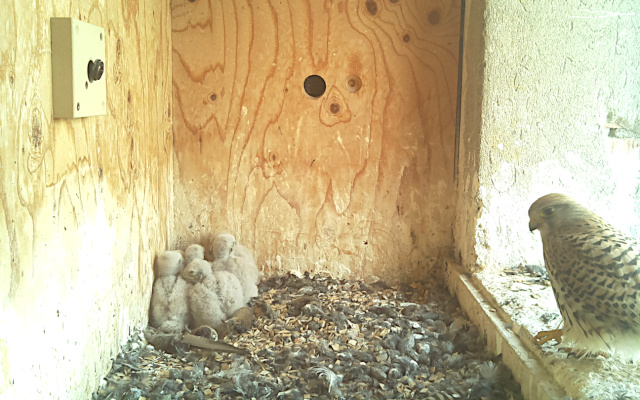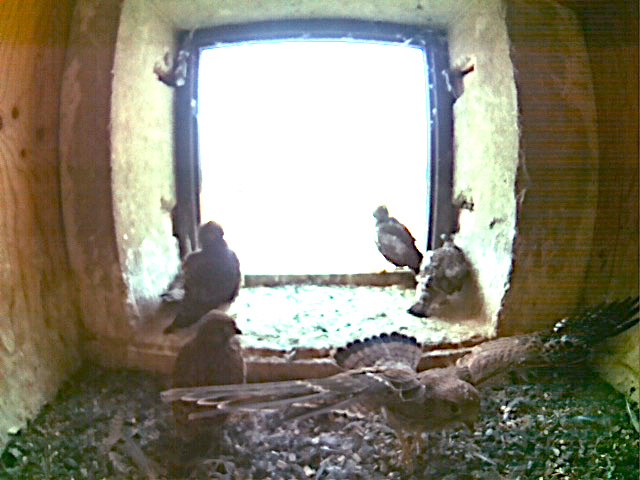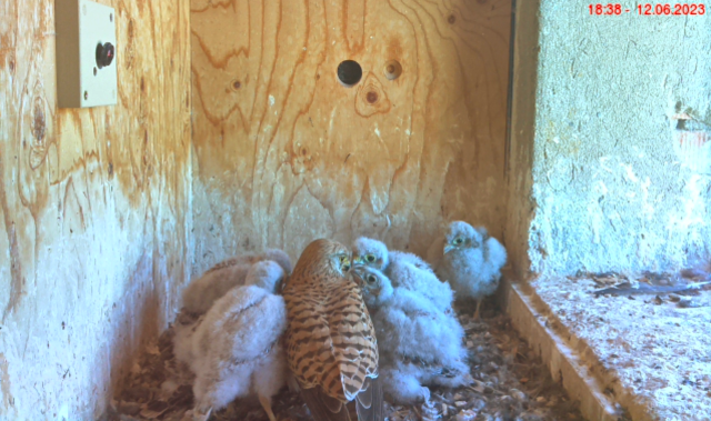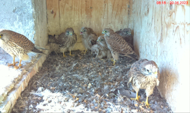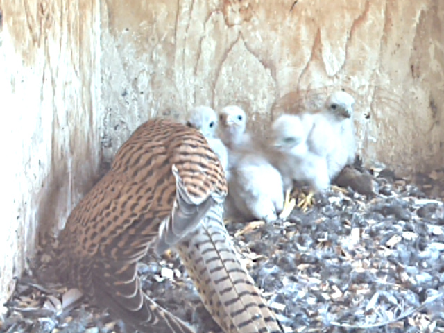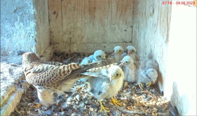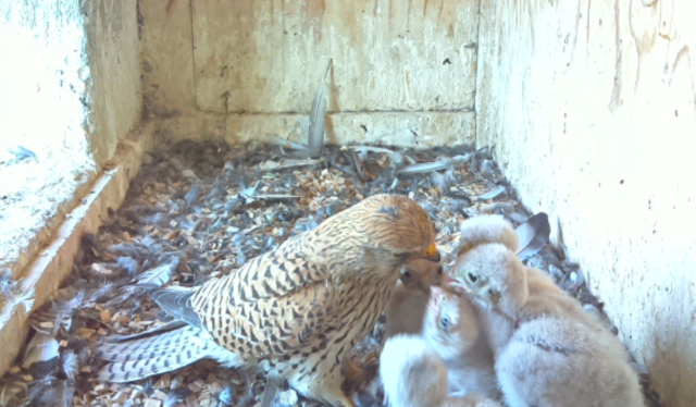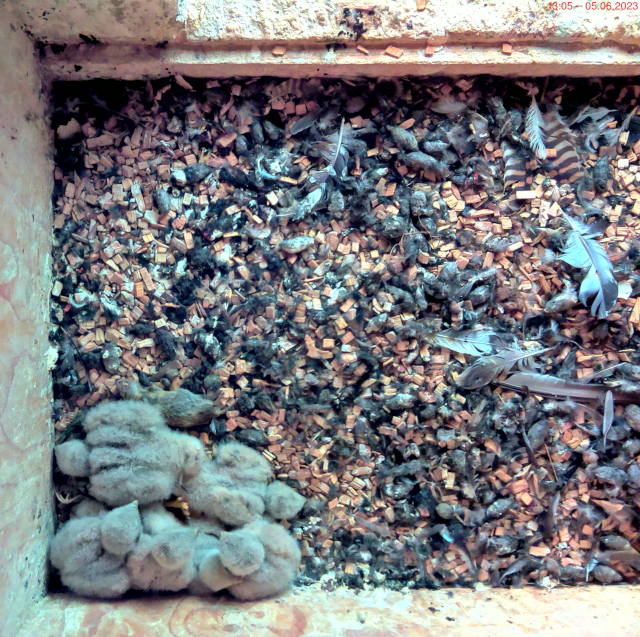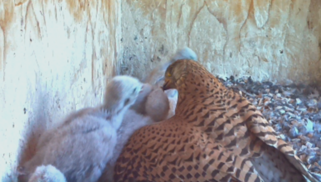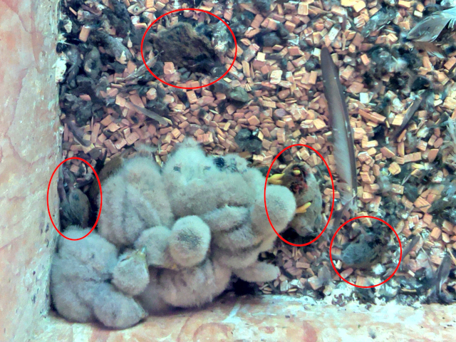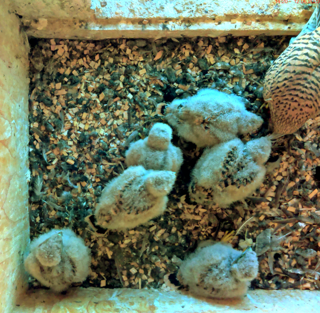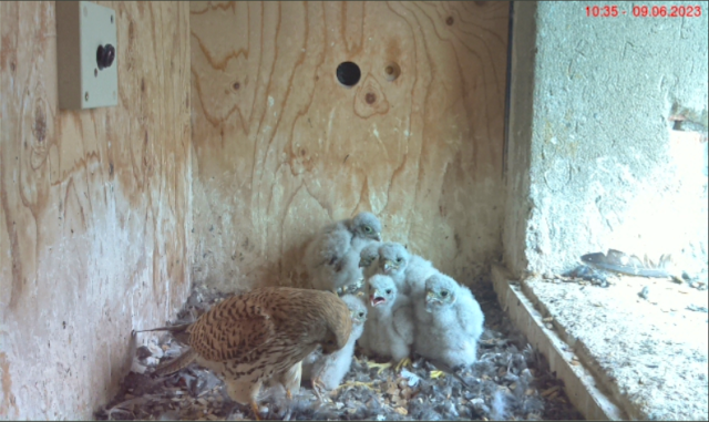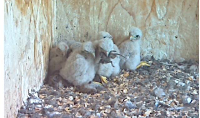 6 Küken - eine Menge Arbeit für die Falkeneltern!