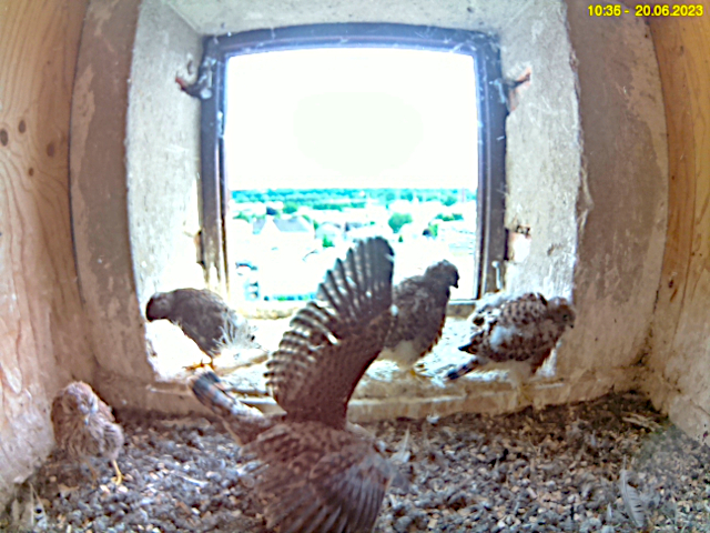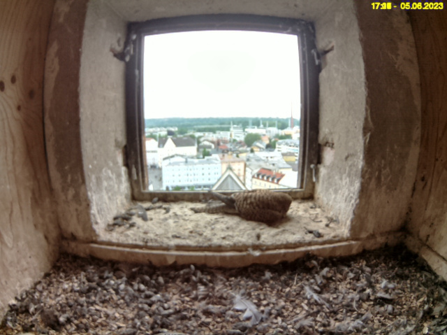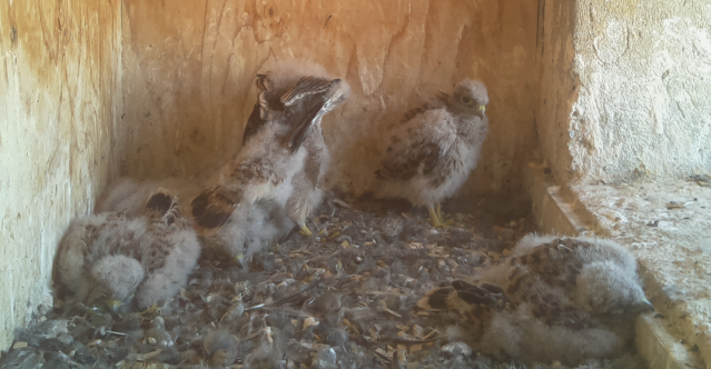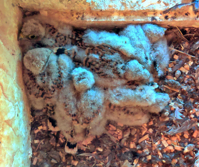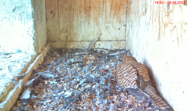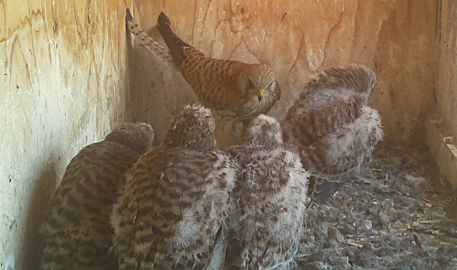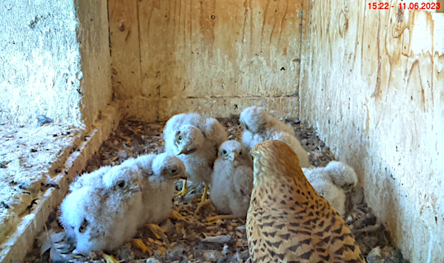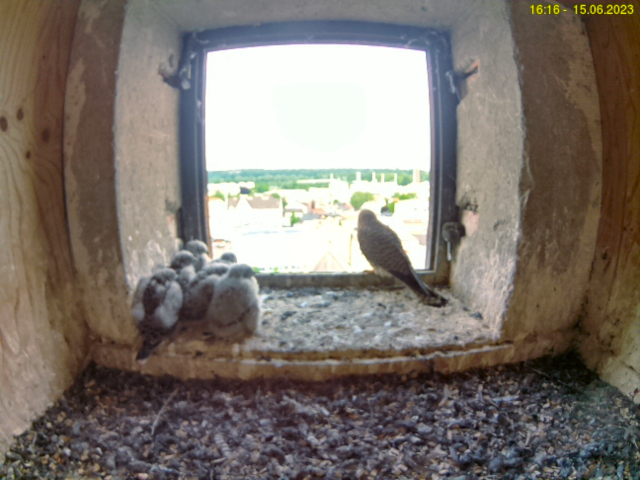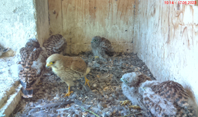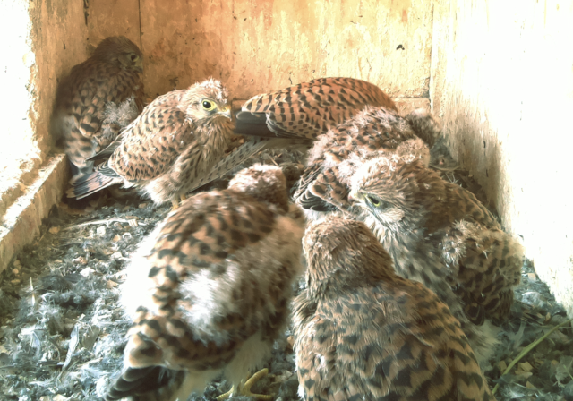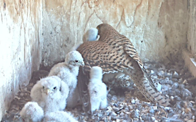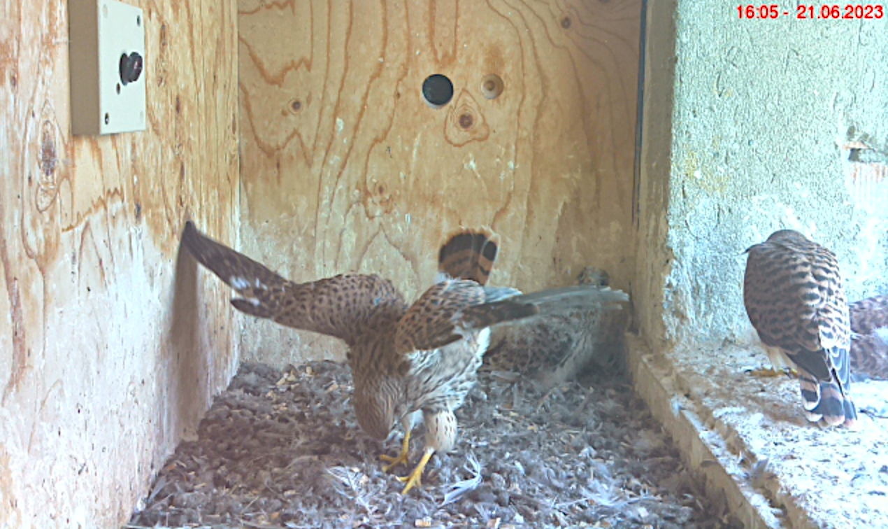 6 Küken - eine Menge Arbeit für die Falkeneltern!