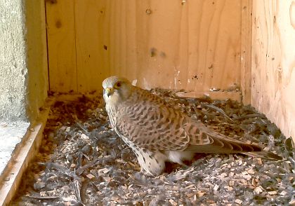 Erst wurde das Nest vorbereitet, das heisst eine Mulde wurde angelegt, denn Falken sind beim Nestbau eher weniger gute Baumeister.