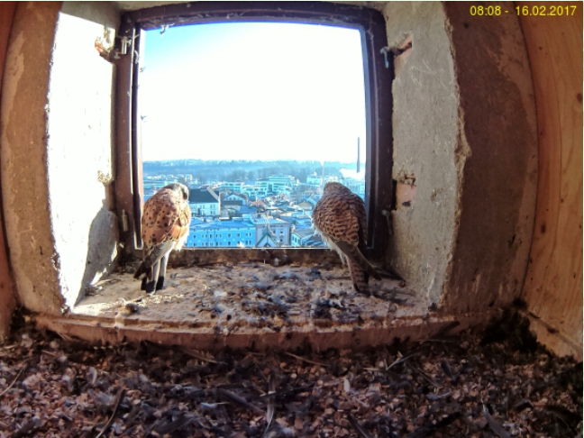 Seit dem 02.03. sind wir uns nun sicher - die Turmfalken werden mit dem Appartment einen Stock tiefer vorlieb