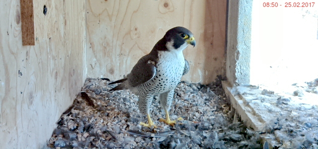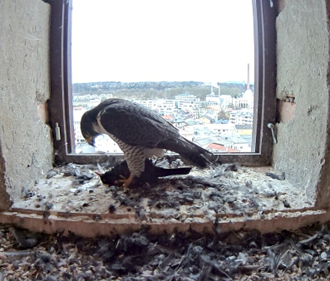 Seit Januar (möglicherweise schon seit Mitte Dezember) ist im Turm immer wieder ein Wanderfalke