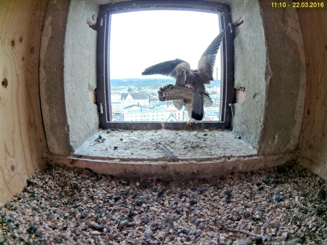 Situation als vor 2 Jahren, als wir ein Wanderfalkenweib zu Besuch im Kasten hatten.