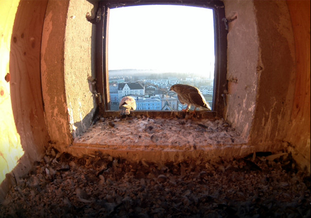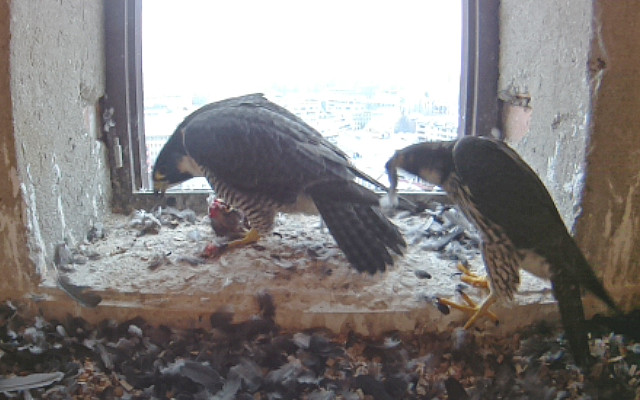 Das Falkenweibchen versorgt sich anscheinend derweil ganz gut selbst