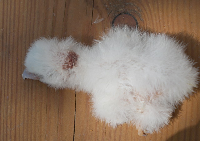 Das tote Küken haben wir mitgenommen, es hat eine Verletzung am Nacken.