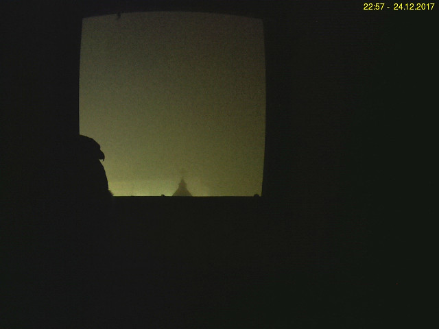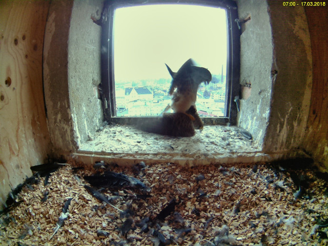 Den ganzen Winter über konnten wir beobachten, dass ein Wanderfalke im Turm übernachtet hat, teilweise