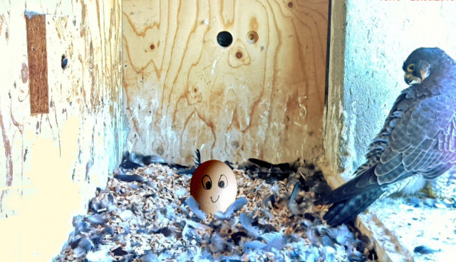 Bruterfolg gerechnet, bis heute früh (13.05.) die Nachricht kam, dass ein Küken geschlüpft sei.