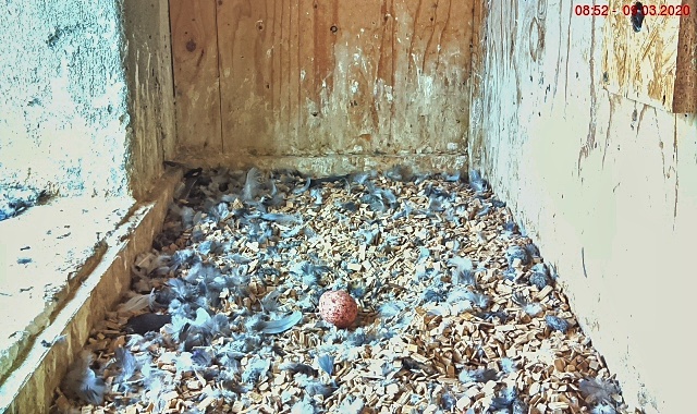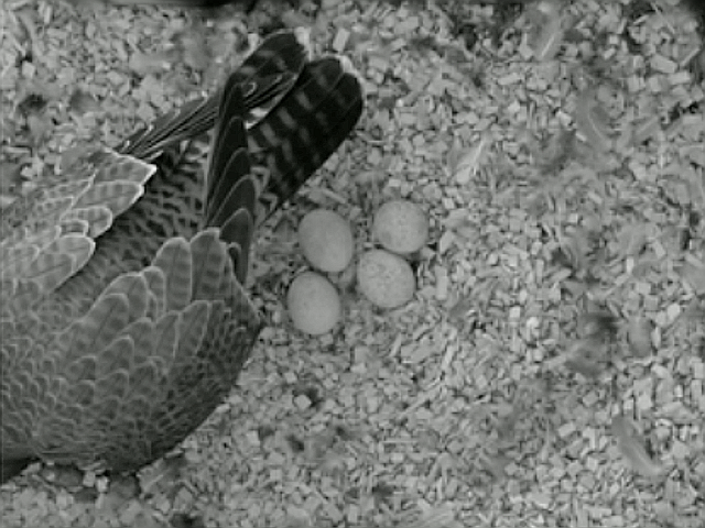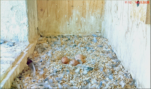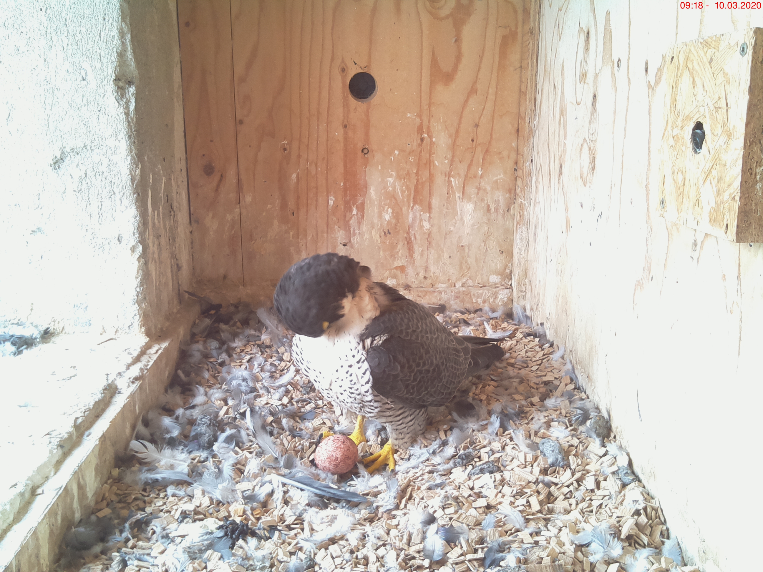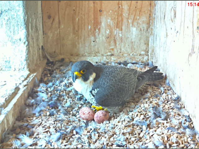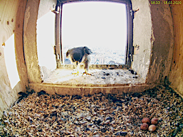 bekomme ich regelmässig Bilder gemailt auf denen man die Falken im Turm sehen kann.