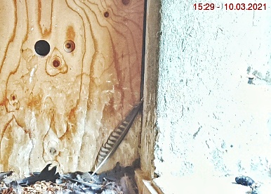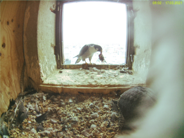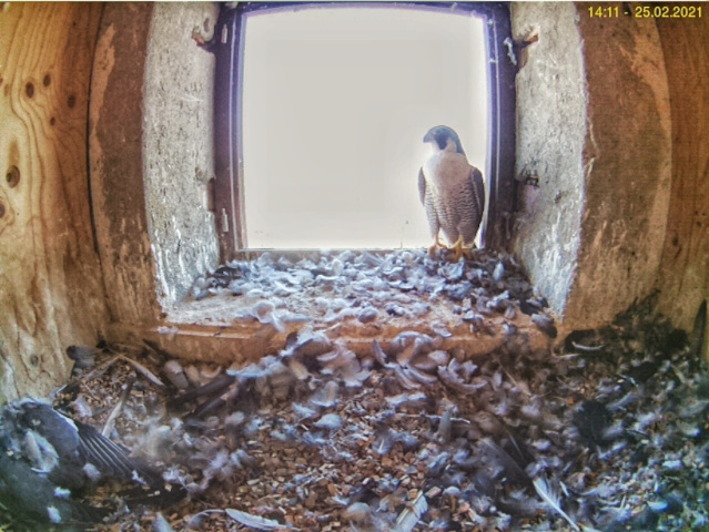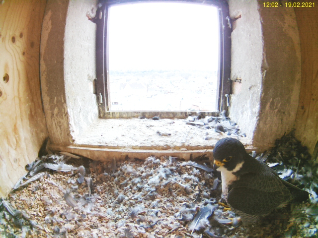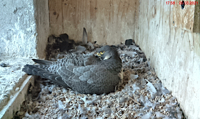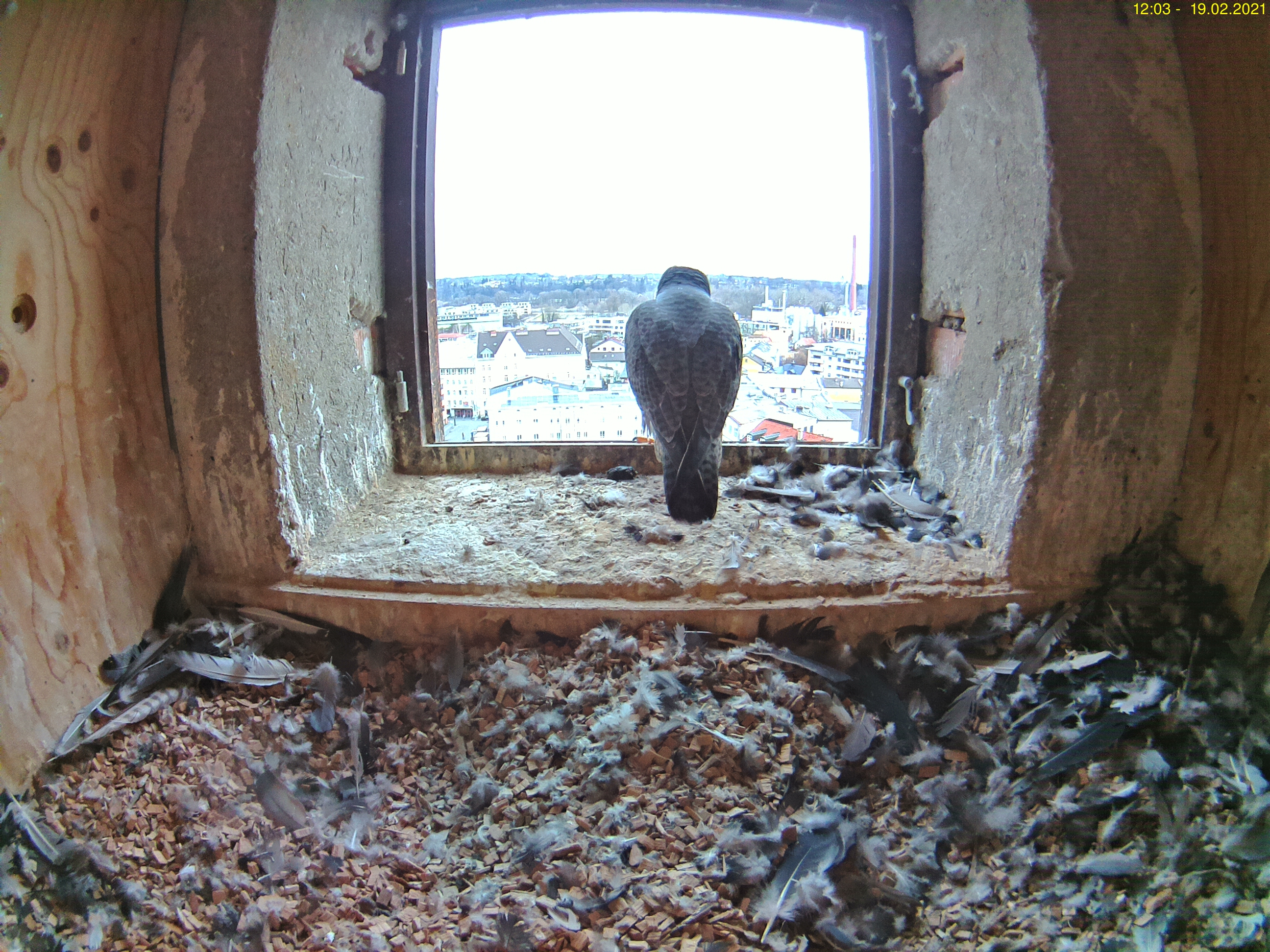 Den ganzen Winter über konnte man unser Falkenpärchen nachts zuverlässig im Kasten beobachten.