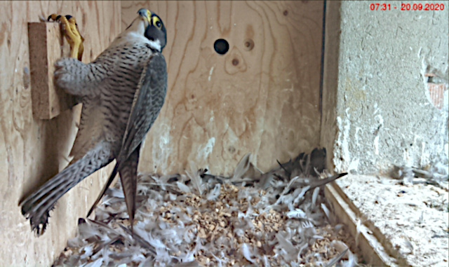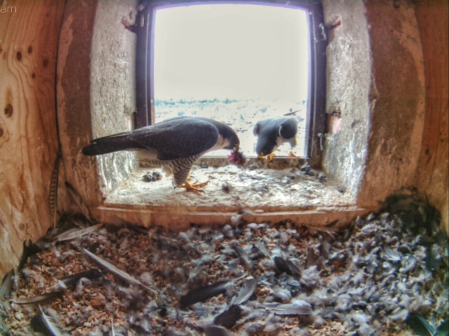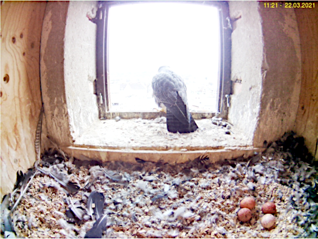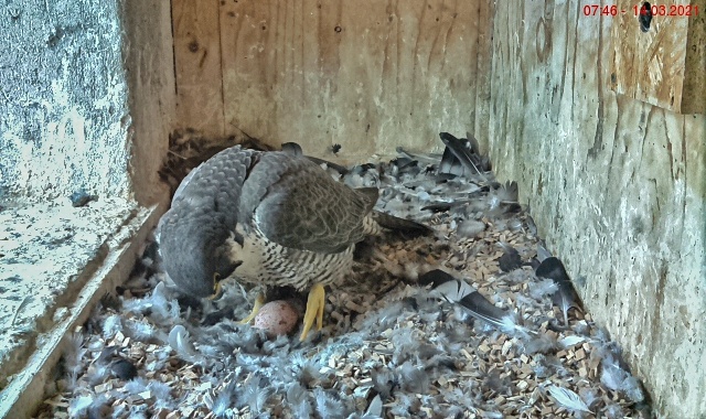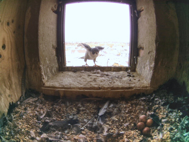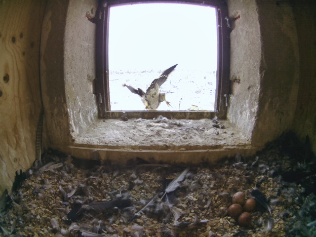 Generell rechnet man bei Wanderfalken mit einer Brutzeit von ca. 32 Tagen, die Zählung beginnt mit der Ablage des 2. Eies.
