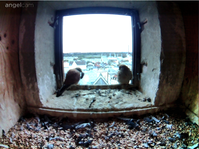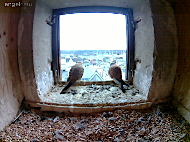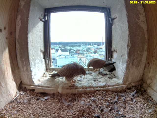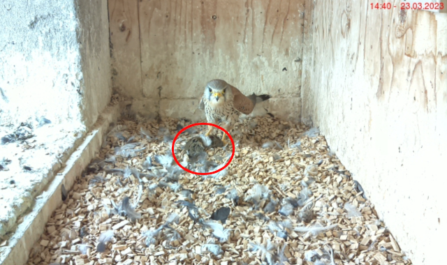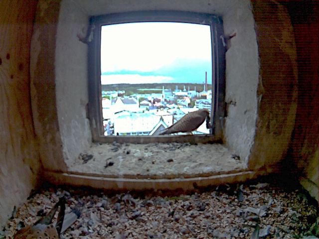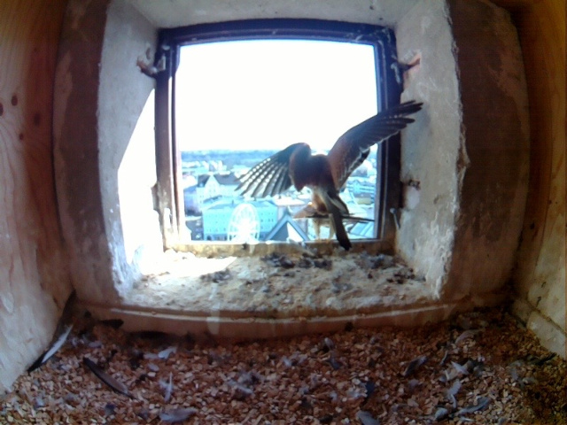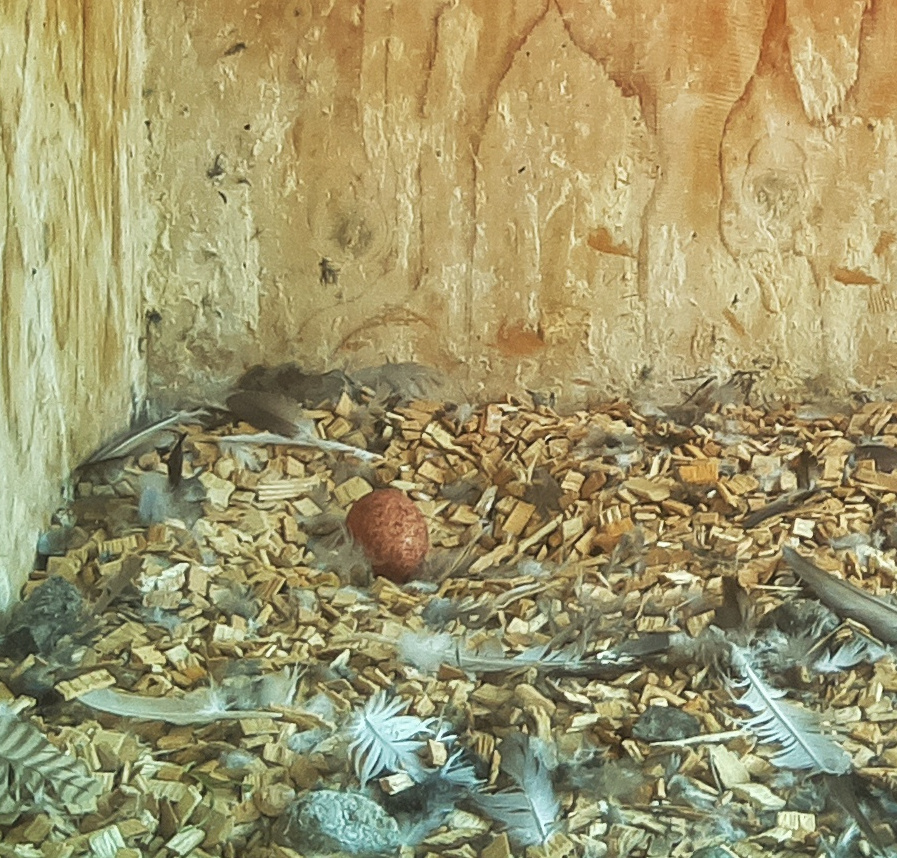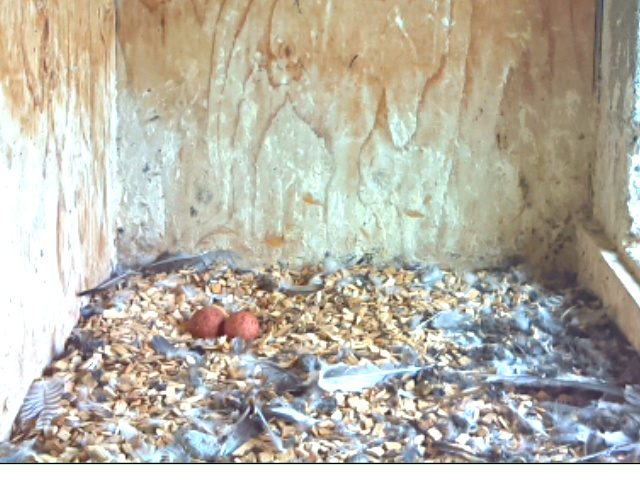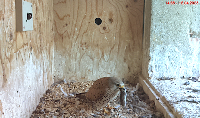 und immer öfter sitzt das Turmfalkenweibchen und wartet auf das erste Ei