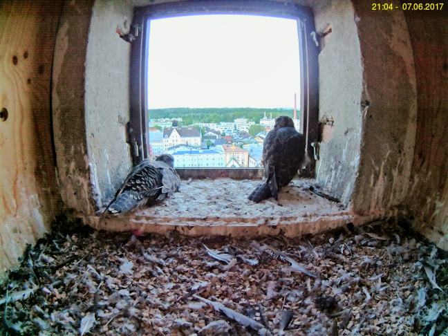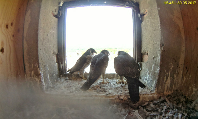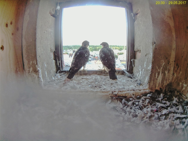 Nun, Ende Mai gab es für die beiden Jungvögel wohl nur ein Gesprächsthema: Wer traut sich als Erster?