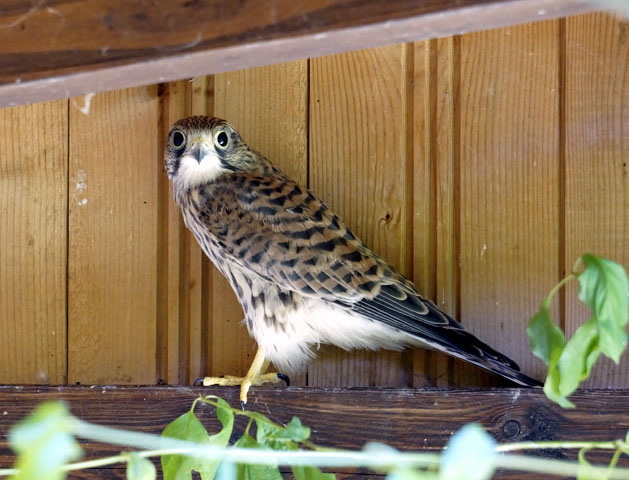 Dann ist es so weit, auch der Nachzügler darf jetzt in den Luftraum. Beim Öffnen der Klappe des Falken-Wohnzimmers flüchtet erst mal die Normalbesatzung.